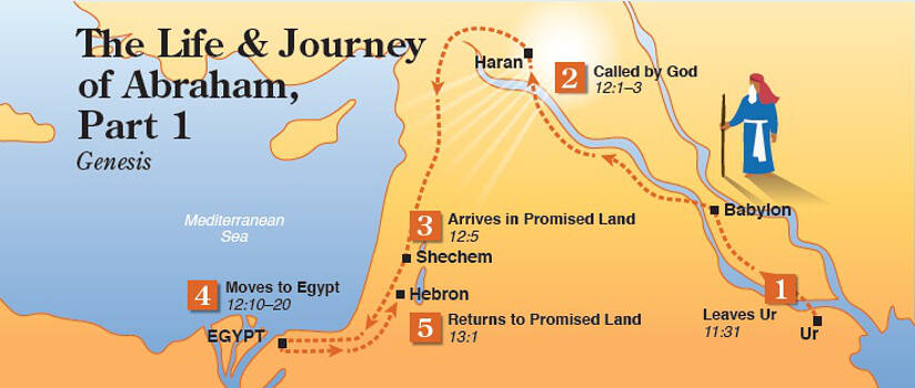 Abraham se verhaal is ’n reis wat deur moedige vertroue gekenmerk word. God roep hom om sy vaderland te verlaat sonder om vir hom die eindbestemming te wys (Hebreërs 11:8). Saam met hierdie roeping kom ’n merkwaardige belofte: God sal hom seën, sy naam groot maak, en deur sy nageslag sal al die nasies van die aarde geseën word (Genesis 12:1–3).